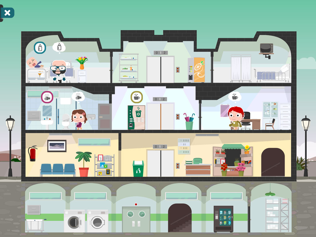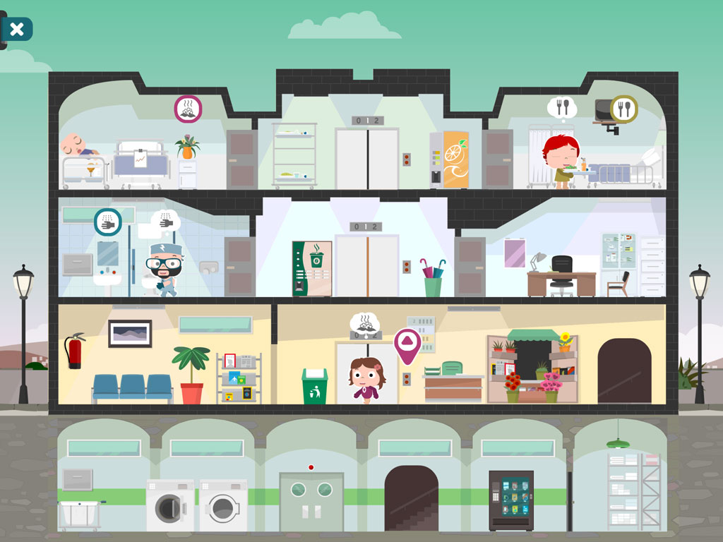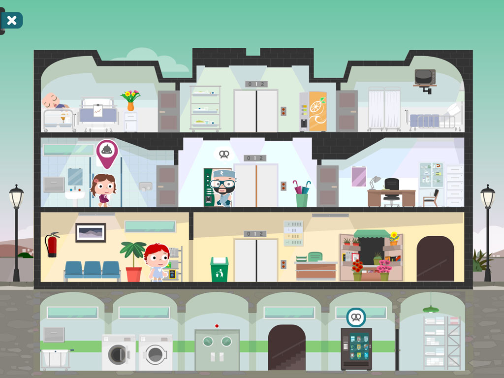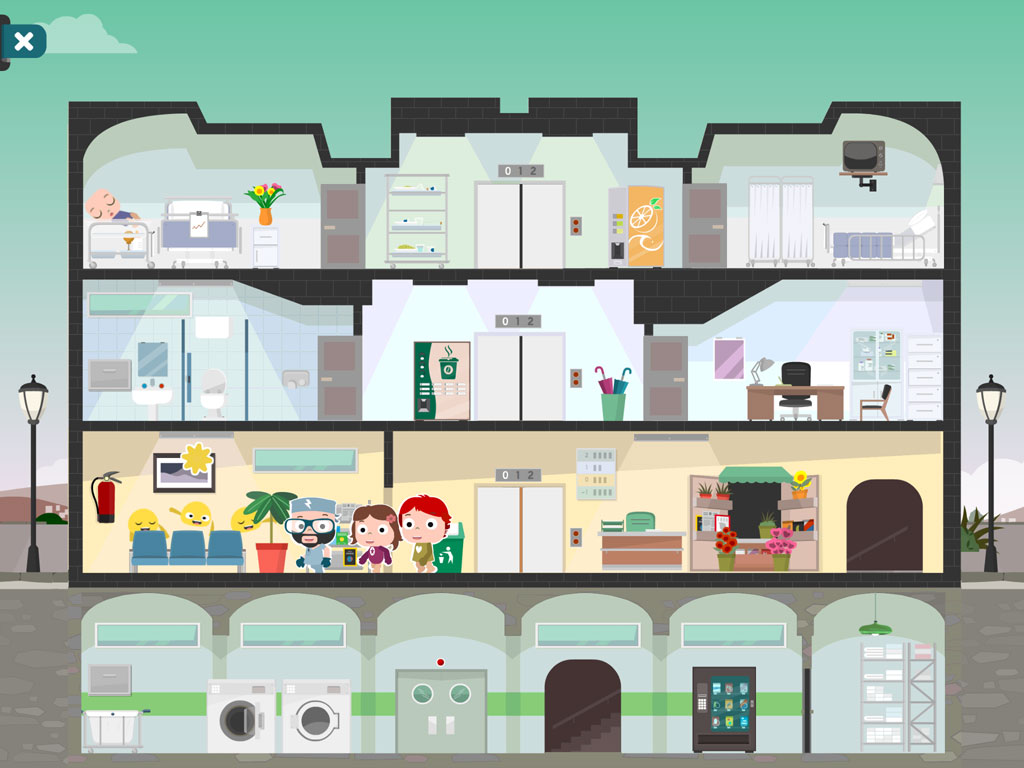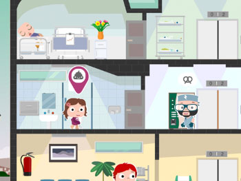 Discover fun missions and gatherings. Up to three people can interact at the same time, moving Papi, Mami and Nola throughout the hospital.